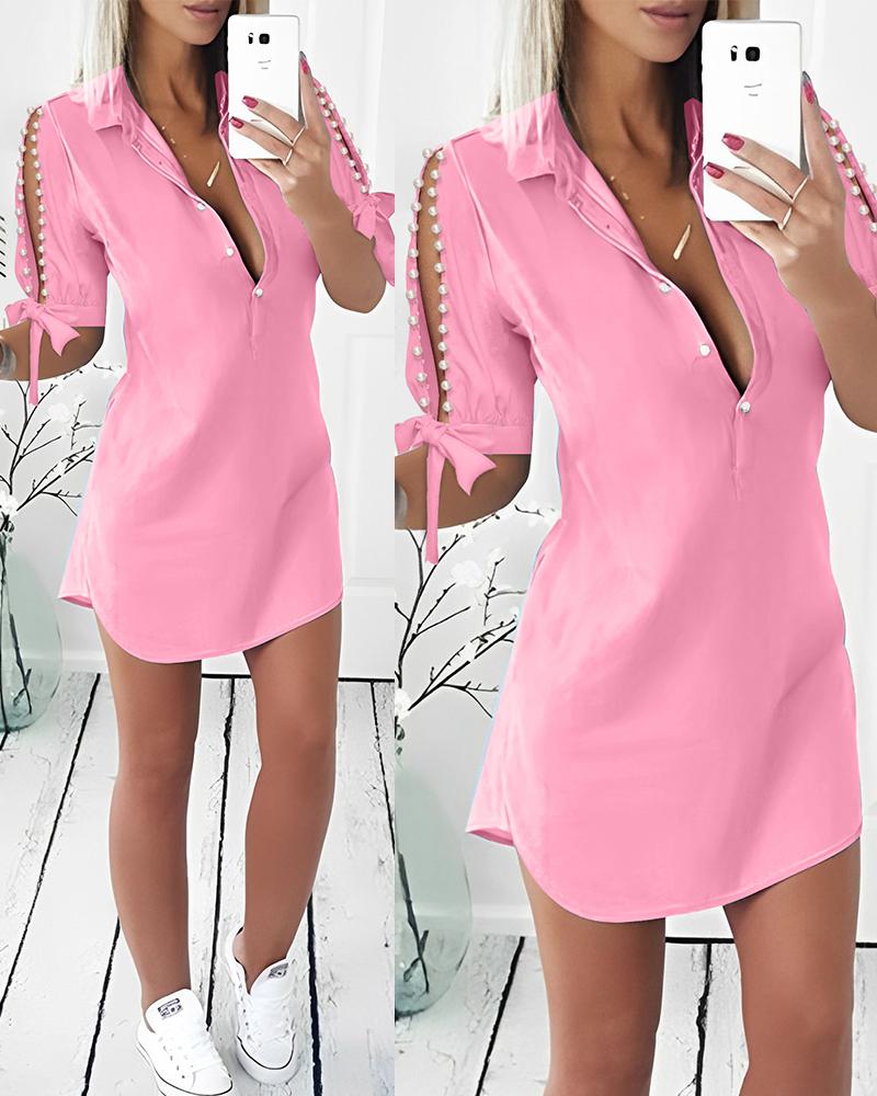 Split Sleeve Pearls Decor Shirt Dress