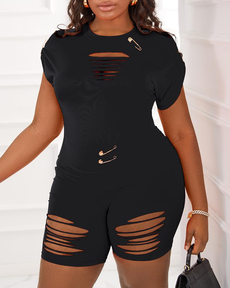 Style:Casual Type:Shorts Set Material:97%Polyester,3%Spandex Neckline:O-neck Sleeve Style:Short Sleeve Length:Above Knee Pattern Type:Plain Decoration:Cutout Fit Type:Regular Occasion:Daily Package Include:1*Shorts Set (With Safety Pins) Fabric Elasticity:Medium Stretch Sheer:Yes Care Instructions:Machine wash or professional dry clean