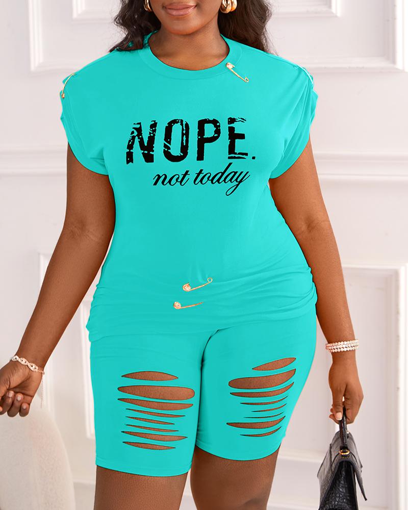Nope Not Today Print Casual Top & Shorts Set