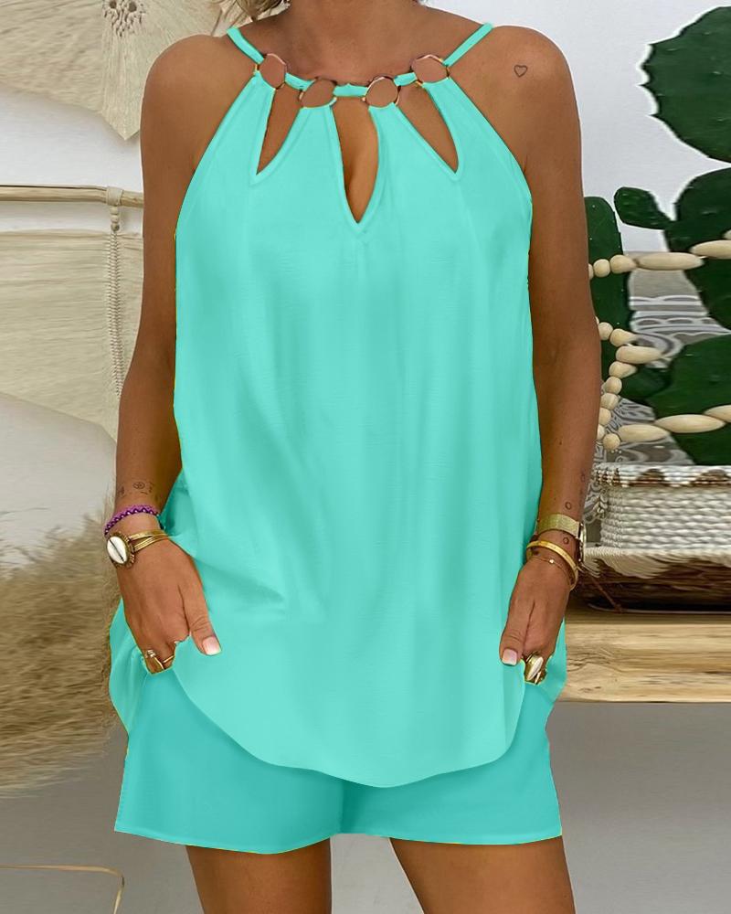 O-Ring Decor Sleeveless Top & Shorts Set