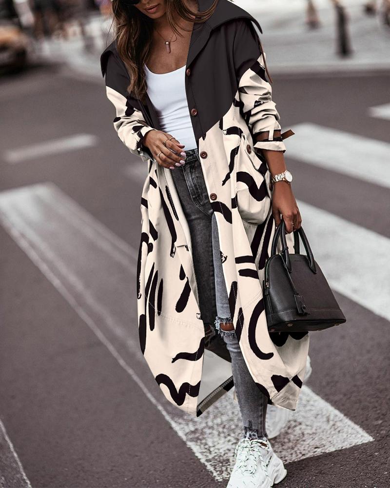 Abstract Print Button Front Longline Trench Coat