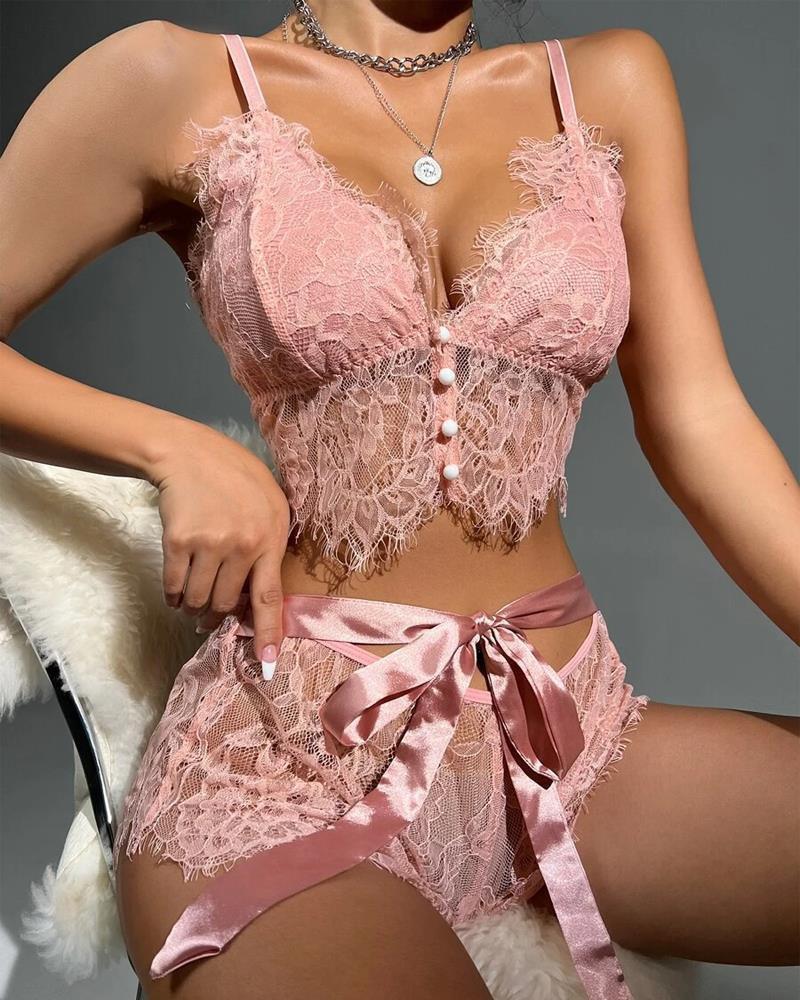 Style:Romantic,Sexy Type:Sexy Sets Material:97%Polyester,3%Spandex Neckline:V-Neck Sleeve Style:Sleeveless Length:Regular Pattern Type:Plain Decoration:Lace,Tied Detail,Button Fit Type:Skinny Occasion:Home Package Include:1*Lingerie Set Fabric Elasticity:Non-Stretch Sheer:Semi-Sheer Care Instructions:Hand wash, do not dry clean