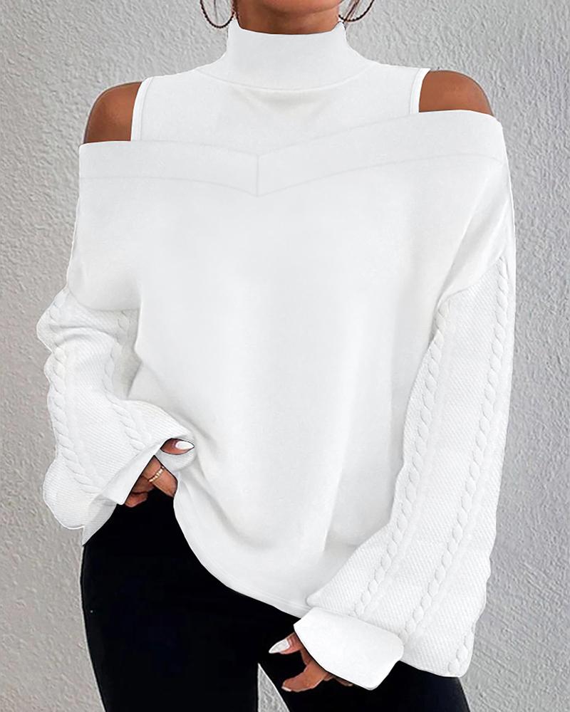 Cold Shoulder Patchwork Cable Cable Textured Top