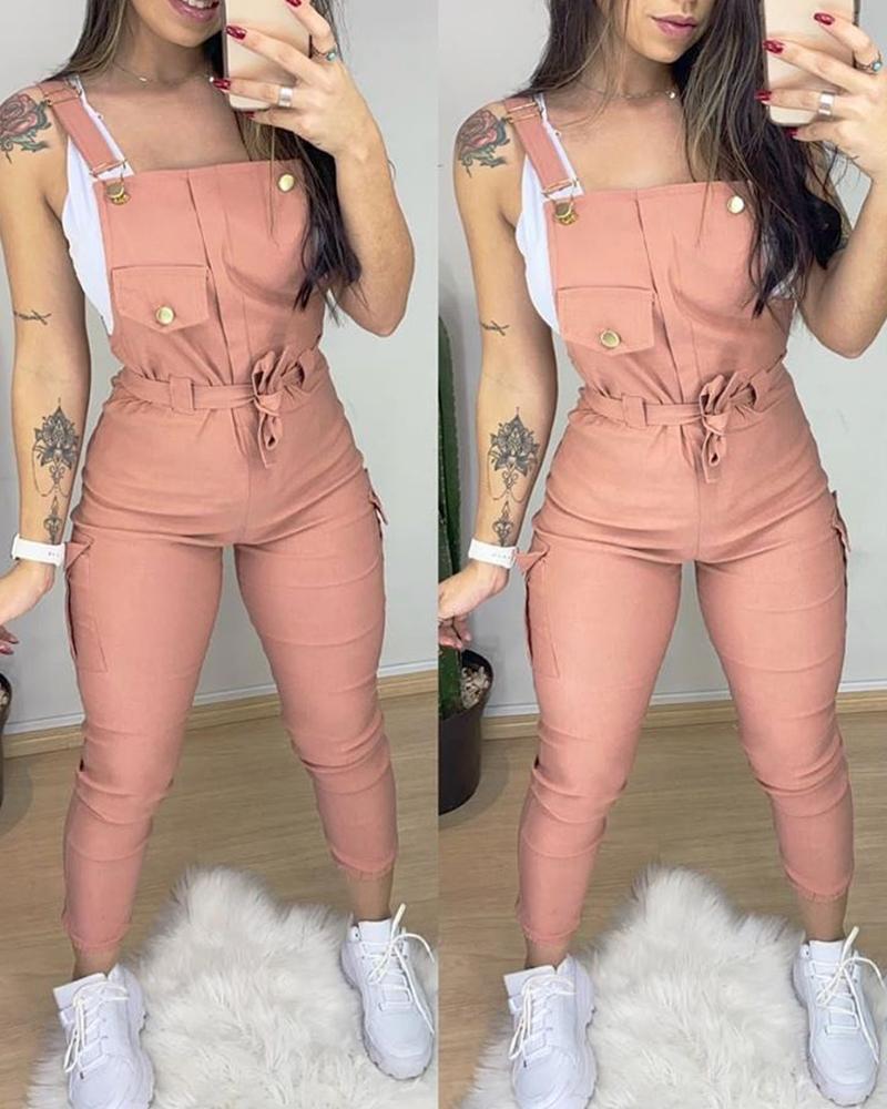 Pocket Design Plain Suspender Jumpsuit