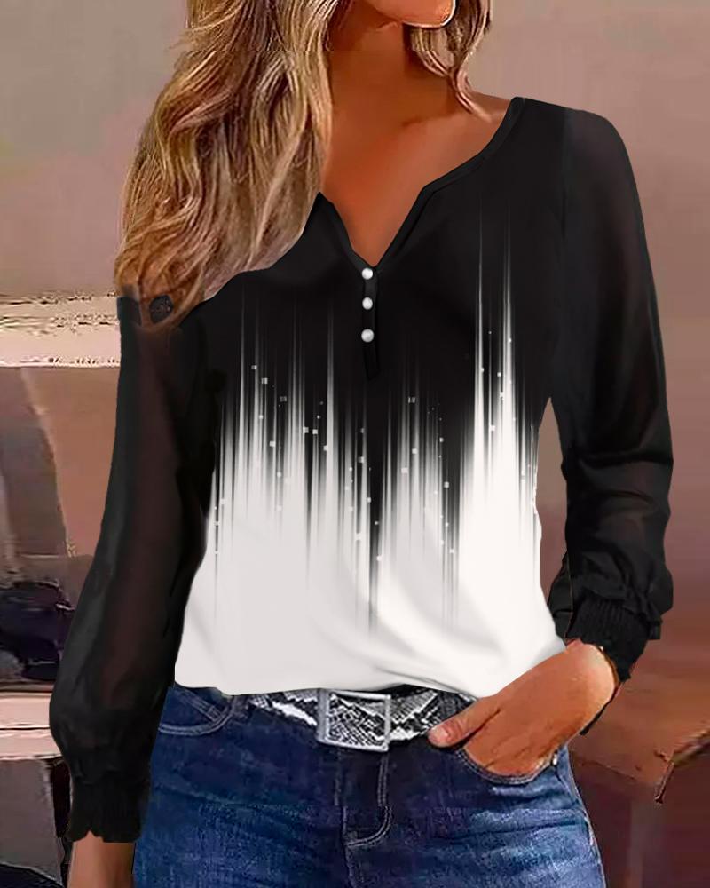 Abstract Print Colorblock Buttoned Casual Top
