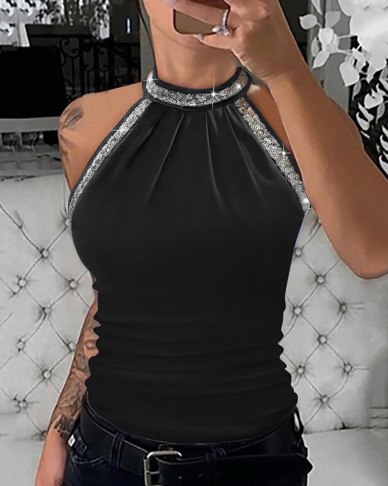 Style:Casual,Chic Type:Tank Material:97%Polyester,3%Spandex Neckline:O-neck Sleeve Style:Sleeveless Length:Regular Pattern Type:Contrast Paneled Decoration:Contrast Sequin Fit Type:Regular Occasion:Daily Package Include:1*Top Fabric Elasticity:Slight Stretch Sheer:No Care Instructions:Machine wash or professional dry clean