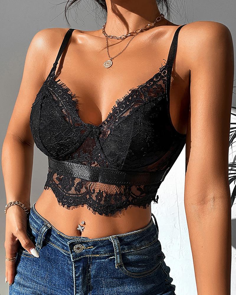 Style:Chic,Sexy Type:Crop Top,Cami Material:Polyester,Lace Neckline:Low Cut Sleeve Style:Sleeveless Length:Crop Pattern Type:Plain Decoration:Lace Fit Type:Skinny Occasion:Daily Package Include:1*Top Fabric Elasticity:Non-Stretch Sheer:Semi-Sheer Care Instructions:Hand wash, do not dry clean
