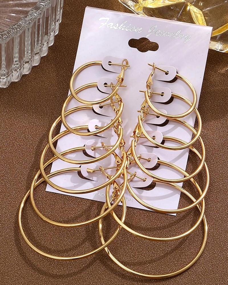 Style:Chic Type:Hoop Earrings Material:Alloy Pattern Type:Geometric Occasion:Daily Package Include:6Pairs Earrings Set