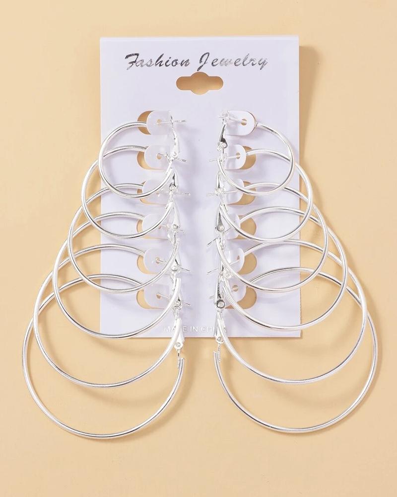 Style:Chic Type:Hoop Earrings Material:Alloy Pattern Type:Geometric Occasion:Daily Package Include:6Pairs Earrings Set