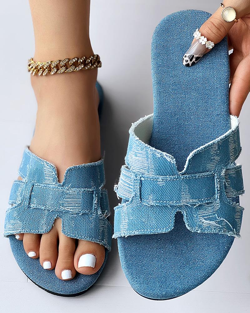 Style:Chic Type:Slippers Material:Denim Pattern Type:Plain Occasion:Daily Toe:Open Toe,Round Toe Heel Height:Flat Package Include:1*Slippers