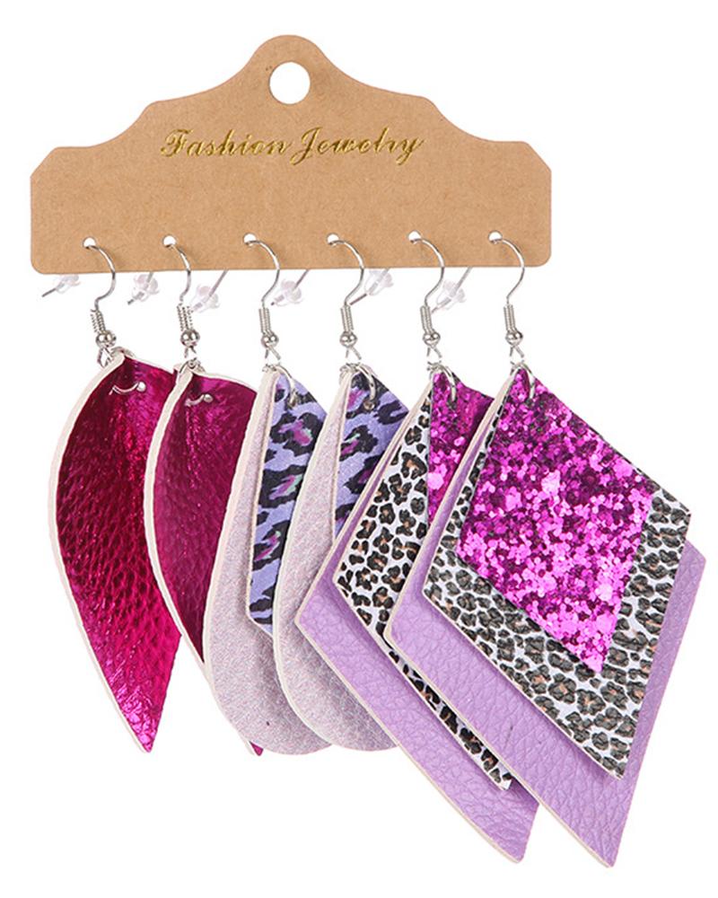 Style:Boho,Vintage Type:Drop Earrings Material:PU Pattern Type:Leopard,Geometric Occasion:Beach,Daily,Vacation Package Include:3Pairs Earrings Set