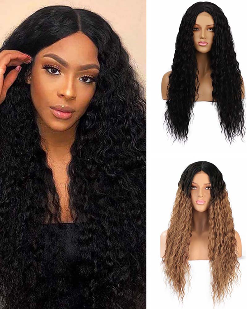 Fluffy Curly Gradient Wavy Curly Wigs High Temperature Resistant Synthetic Wig