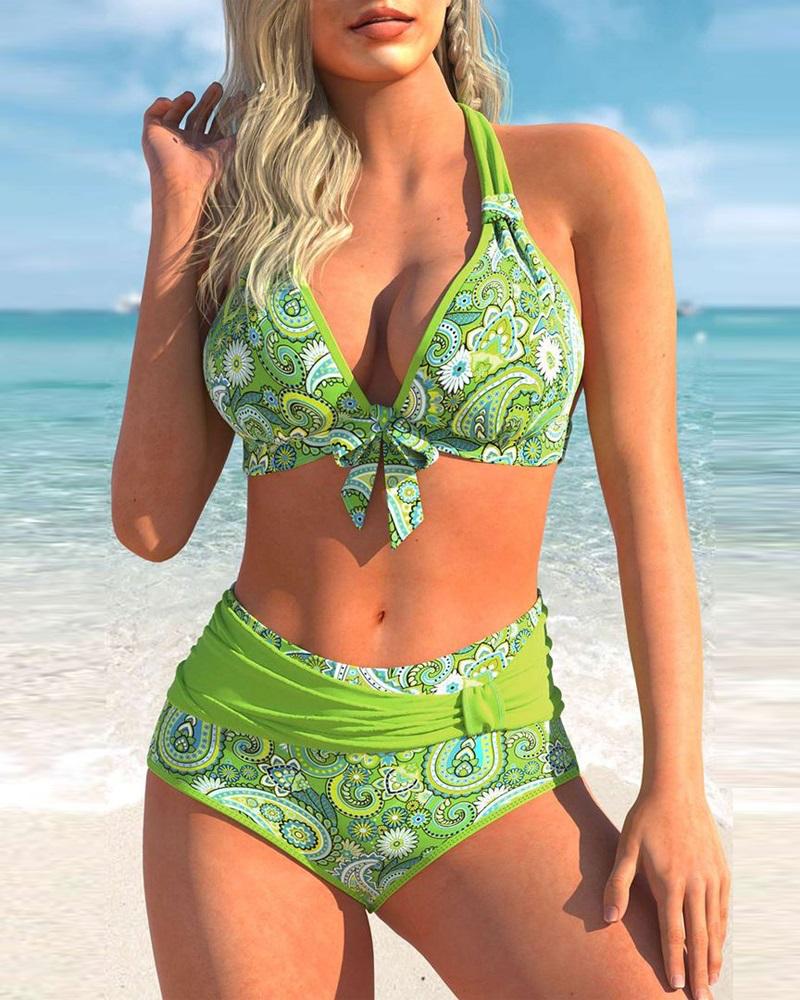 Style:Chic Type:Wireless Bra Material:80%Polyamide,20%Elastane Neckline:Halter Sleeve Style:Sleeveless Length:Regular Pattern Type:Paisley Decoration:Tied Detail Fit Type:Skinny Occasion:Beach,Vacation Package Include:1*Swimwear Fabric Elasticity:High Stretch
