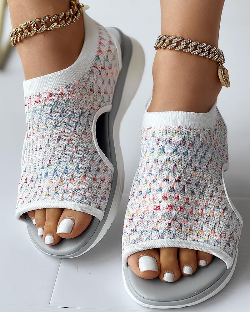 Style:Casual Type:Flat Sandals Pattern Type:Geometric Occasion:Daily Toe:Peep Toe Heel Height:Flat Package Include:1*Sandals