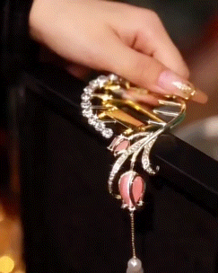 1pc Rhinestone Tulip Pearls Tassel Design Hair Clip