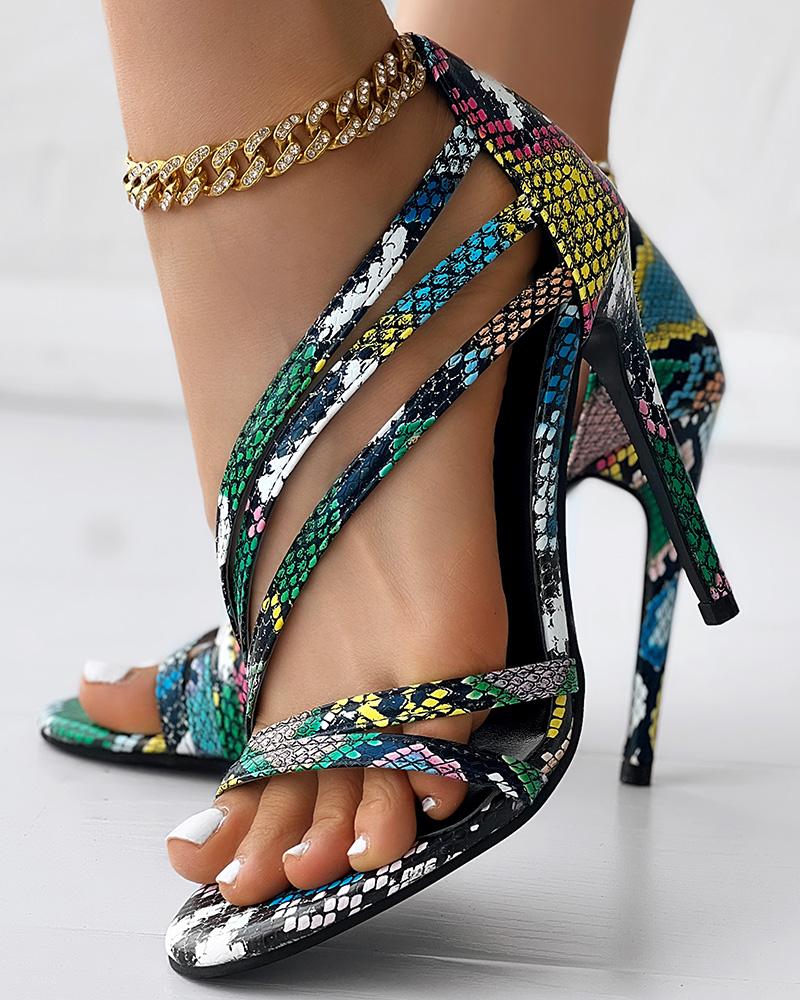 Snakeskin Multi Straps Stiletto Heeled Sandals