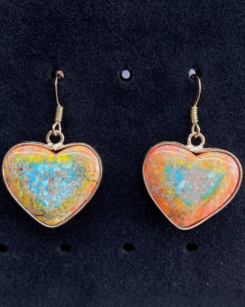 1Pair Bohemian Natural Stone Heart Shaped Drop Earrings