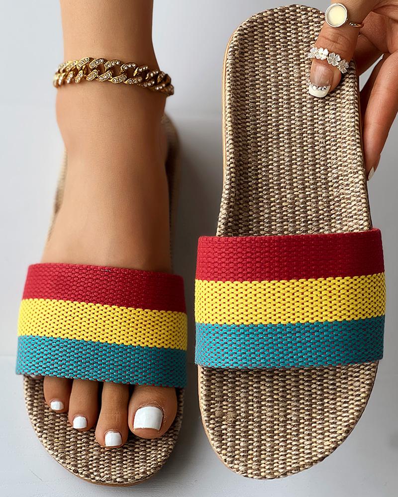 Style:Casual,Chic Type:Slippers Pattern Type:Colorblock Occasion:Daily,Home Toe:Open Toe,Round Toe Heel Height:Flat Package Include:1*Slippers