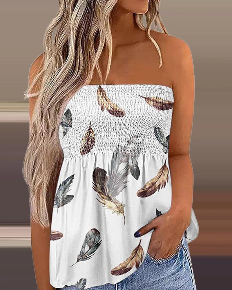 Style:Chic Type:Tank Material:Polyester Neckline:Bandeau Sleeve Style:Sleeveless Length:Regular Pattern Type:Graphic Decoration:Ruched,Shirred Fit Type:Regular Occasion:Daily,Vacation Package Include:1*Top Fabric Elasticity:Slight Stretch Sheer:No Care Instructions:Machine wash or professional dry clean
