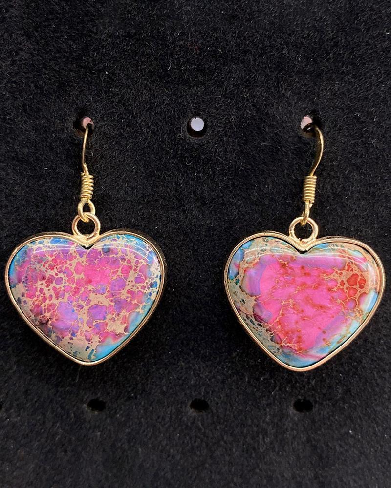 1Pair Bohemian Natural Stone Heart Shaped Drop Earrings