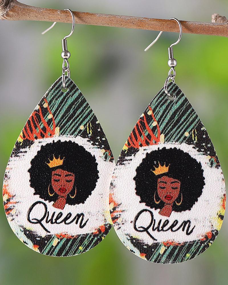 1Pair Queen Letter Figure Waterdrop Hook Earrings