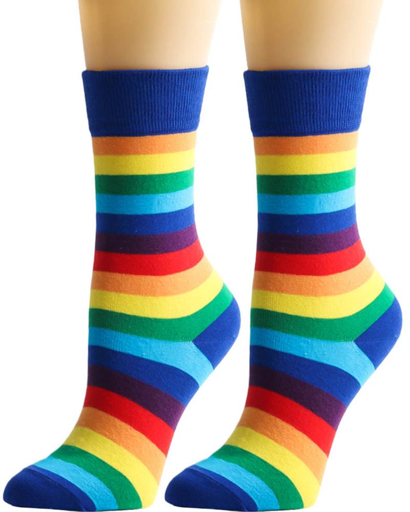 Style:Chic Type:Socks Pattern Type:Rainbow Stripe Occasion:Daily Package Include:1Pair Socks
