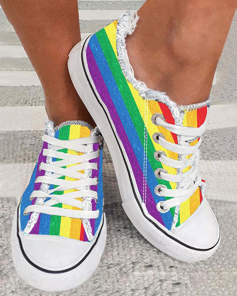 Style:Casual Type:Sneakers Material:Canvas Pattern Type:Rainbow Stripe Decoration:Raw Hem Occasion:Daily Toe:Round Toe Heel Height:Flat Package Include:1*Sneakers