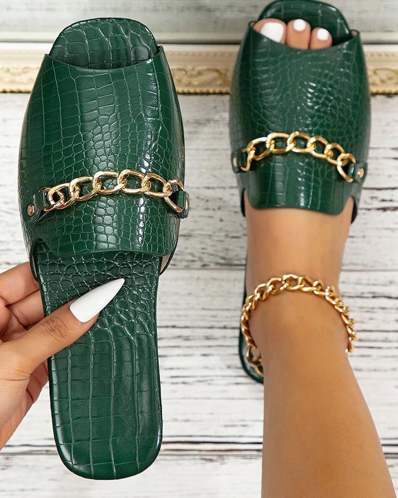 Crocodile Chain Decor Peep Toe Slippers