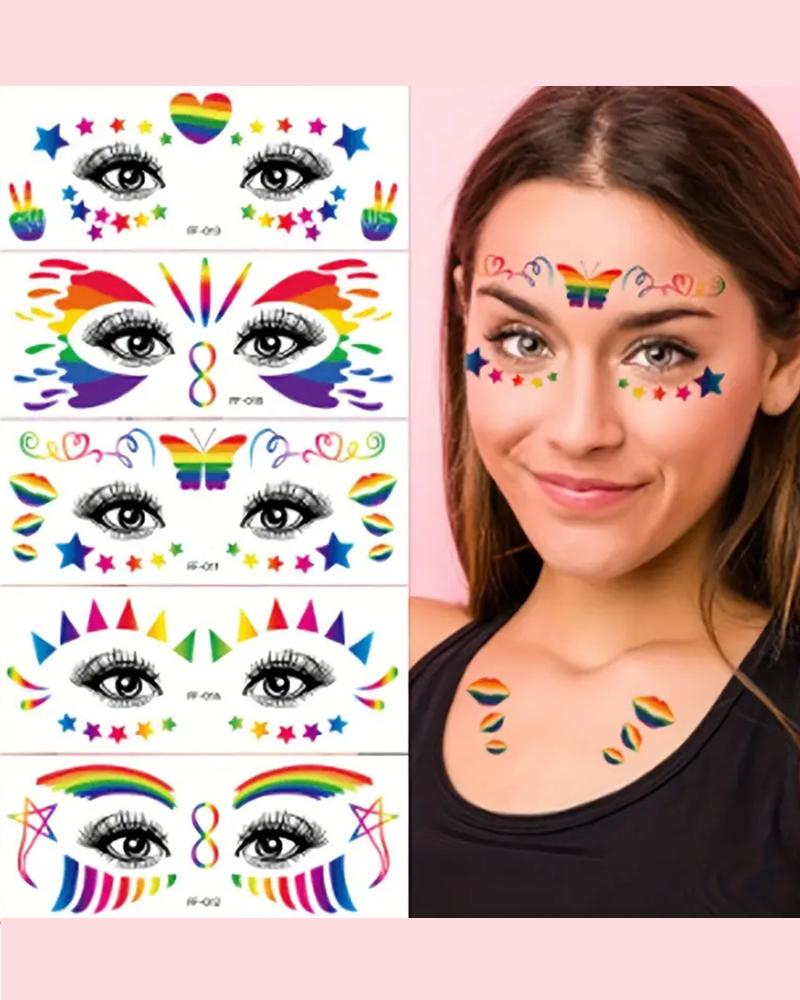 1sheet Pride Month Rainbow Stripe Graphic Waterproof Temporary Face Tattoo Stickers
