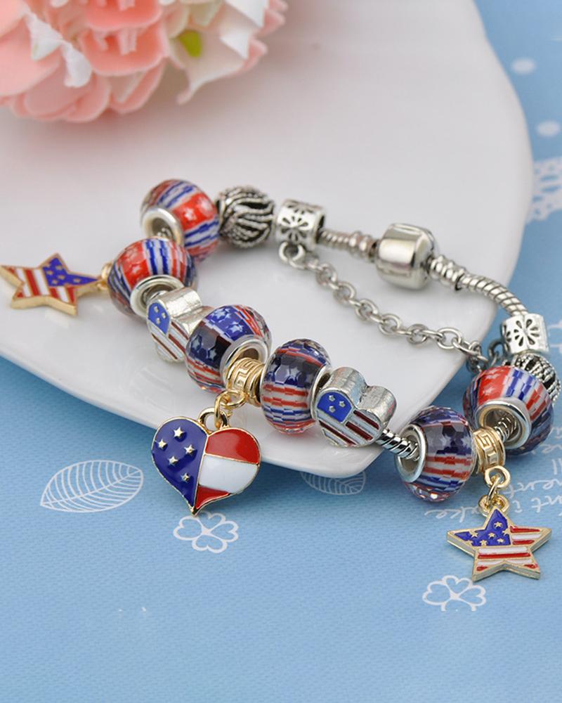 1pc Independence Day USA Flag Heart Star Beaded Bracelet