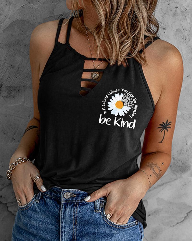 Daisy Letter Print Cutout Tank Top