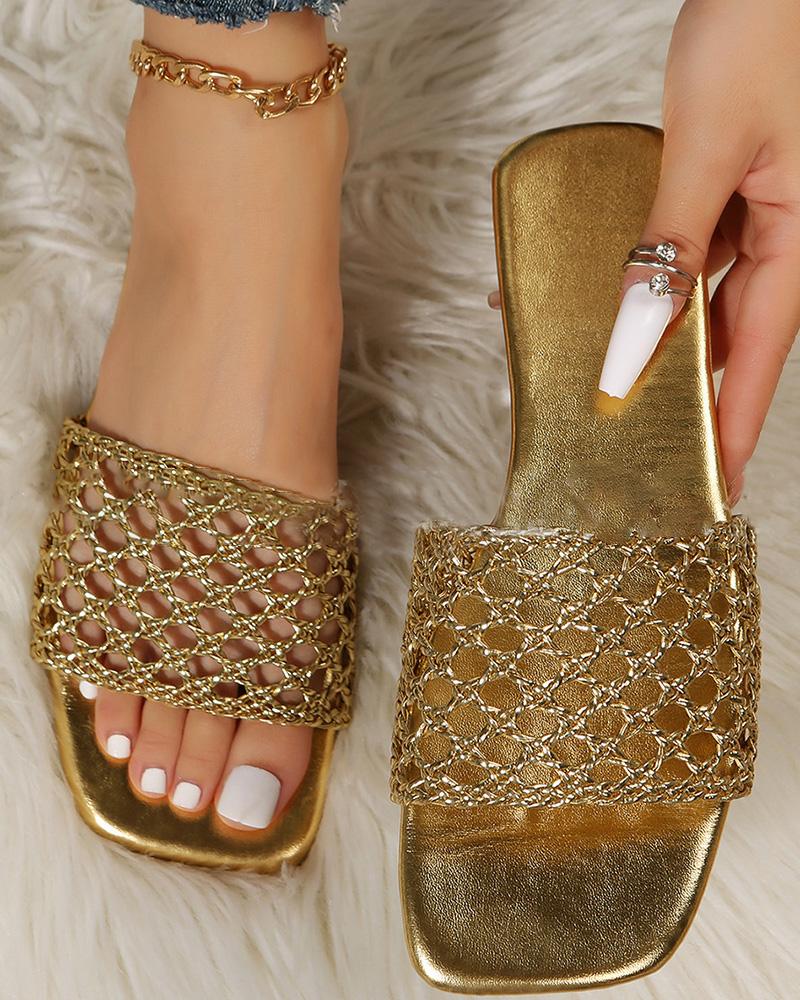 Style:Chic Type:Slippers Pattern Type:Plain Decoration:Hollow-out Occasion:Beach,Daily,Vacation Toe:Open Toe,Square Toe Heel Height:Flat Package Include:1*Slippers