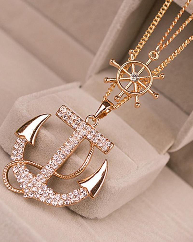 1pcs Multi-layer Rhinestone Wheel Anchor Pendant Necklace