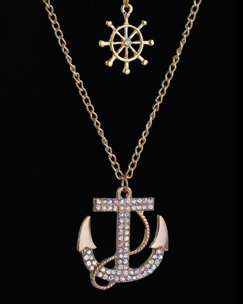 1pcs Multi-layer Rhinestone Wheel Anchor Pendant Necklace