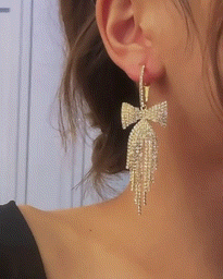 1Pair Bowknot Design Rhinestone Tassel Drop Earrings