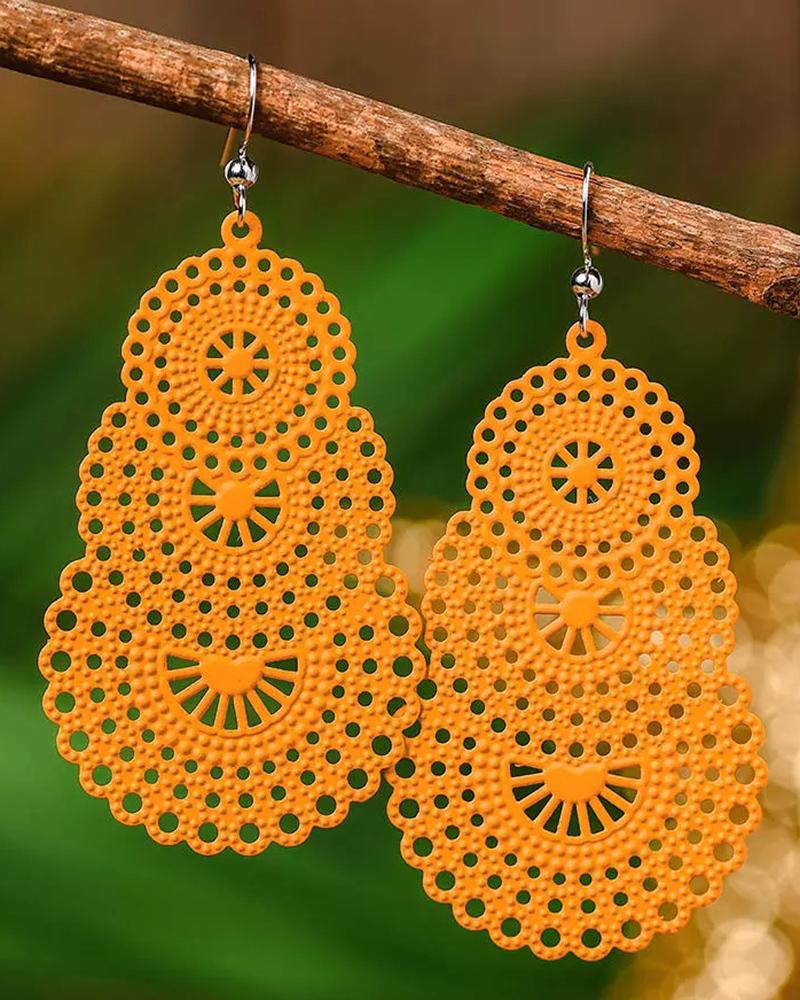 Style:Boho,Chic Type:Drop Earrings Pattern Type:Geometric Decoration:Hollow-out Occasion:Daily,Vacation Package Include:1Pair Earrings