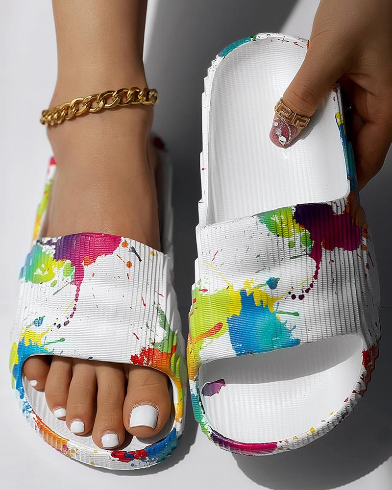 Ink Splash Print Platform Beach Slippers