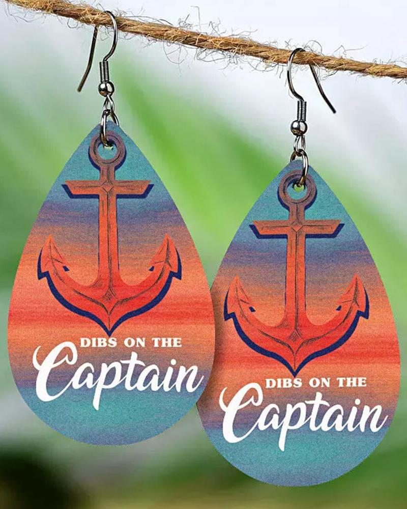 1Pair Dibs On The Captain Gradient Anchor Print Drop Earrings