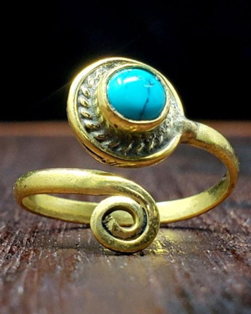 1pc Bohemian Tribal Geometric Turquoise Opening Ring