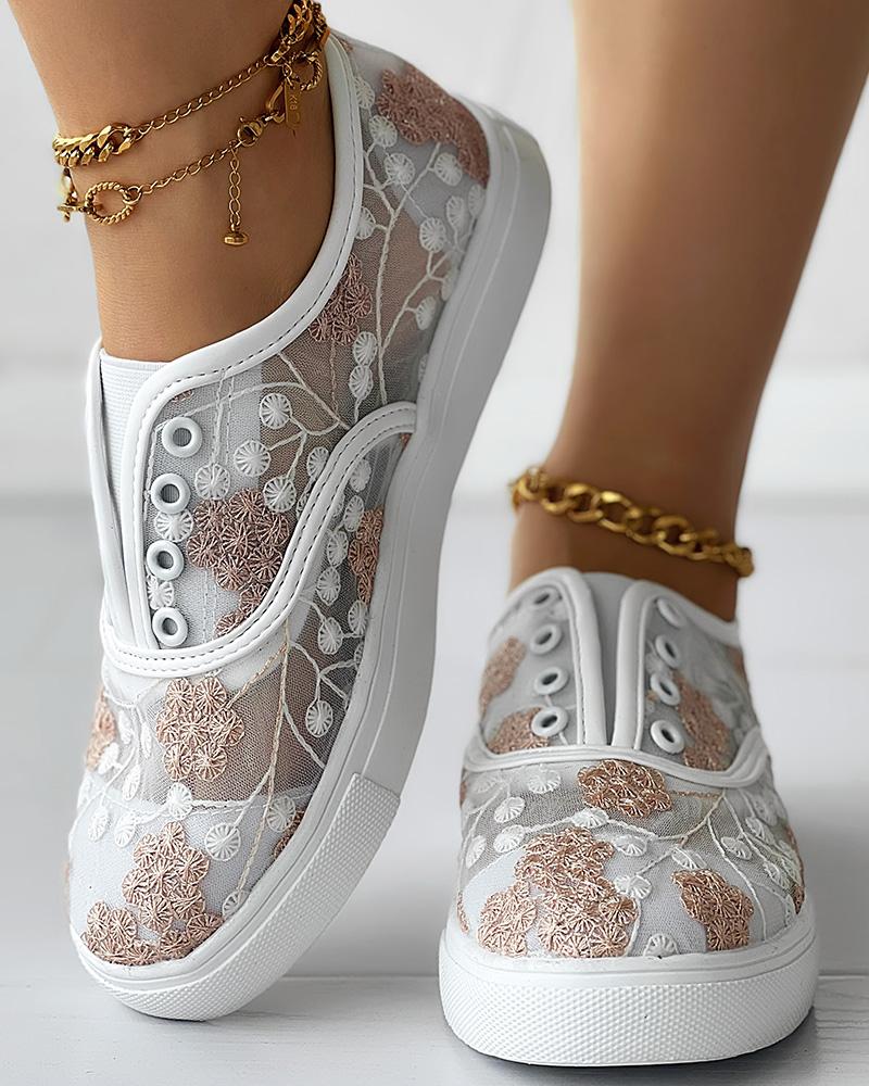 Style:Chic Type:Slip-On Pattern Type:Floral Occasion:Daily Toe:Round Toe Heel Height:Flat Package Include:1*Slip-On