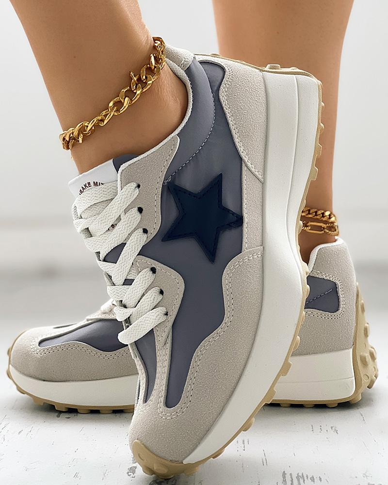 Colorblock Star Pattern Lace-up Muffin Sneakers