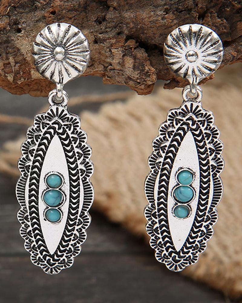 1Pair Bohemian Turquoise Oval Drop Earrings