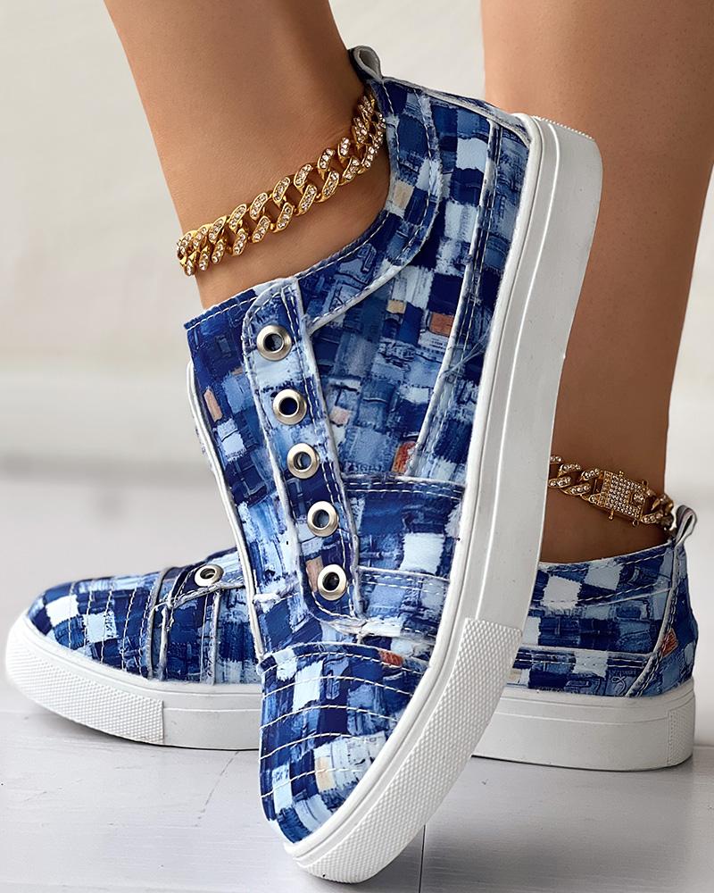 Denim Look Print Eyelet Canvas Sneakers