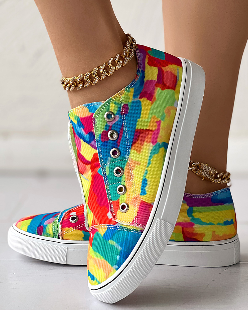 Melting Colors All Over Print Eyelet Canvas Sneakers