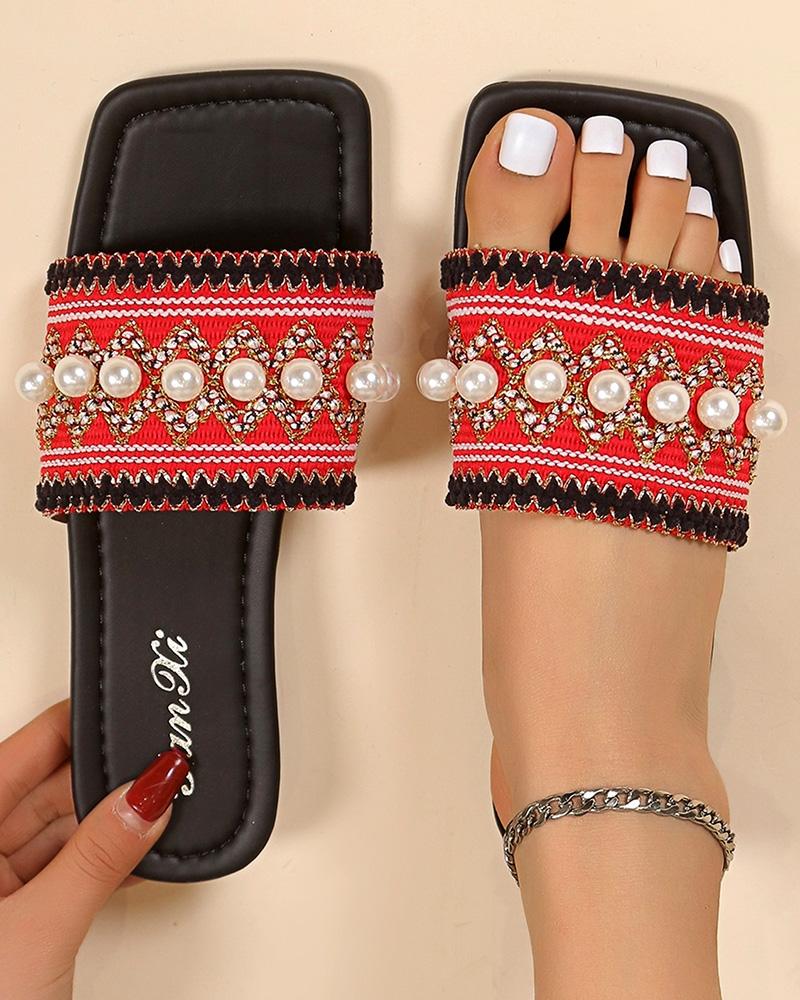 Faux Pearl Decor Tribal Bohemian Beach Slippers