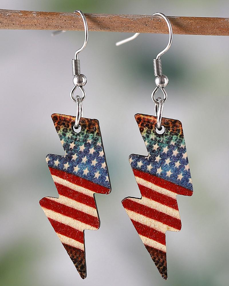1Pair Independence Day Flag Lightning Shaped Waterdrop Earrings