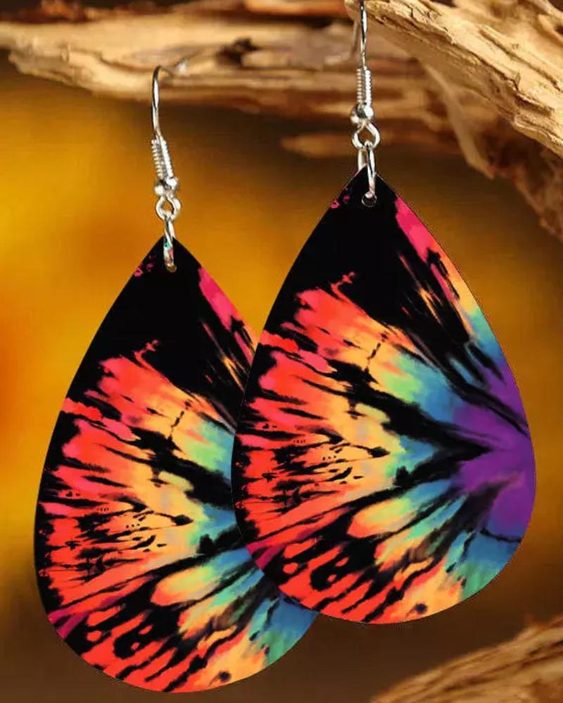 Style:Chic,Vintage Type:Drop Earrings Material:PU Pattern Type:Tie Dye Occasion:Daily,Vacation Package Include:1Pair Earrings