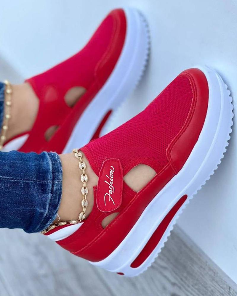 Style:Casual,Sporty Type:Sneakers Material:Canvas Pattern Type:Contrast Paneled,Letter Decoration:Cutout Occasion:Daily Toe:Round Toe Heel Height:Flat Package Include:1*Sneakers