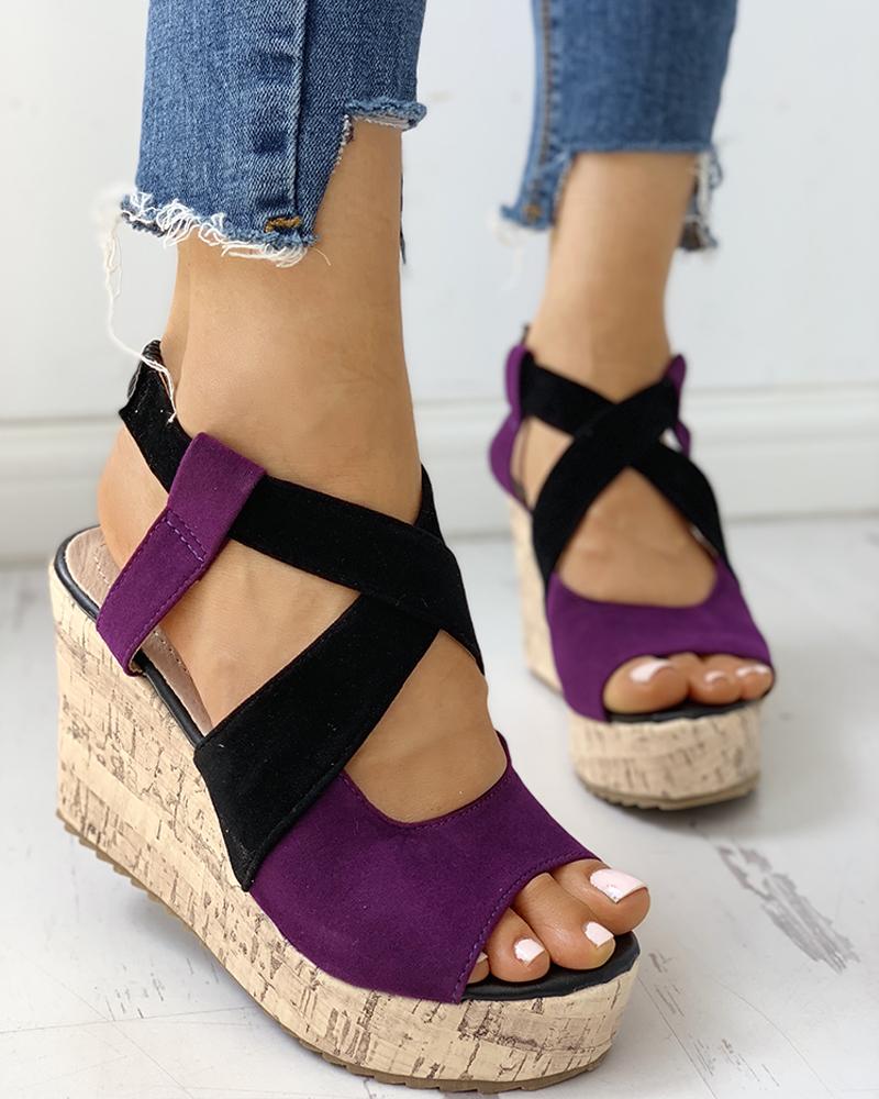 Peep Toe Colorblock Platform Wedge Sandals