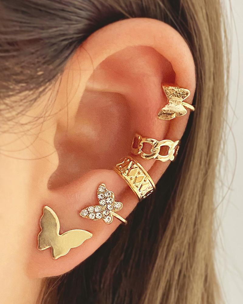 5pcs Butterfly Shaped Ear Cuffs & Earrings Set